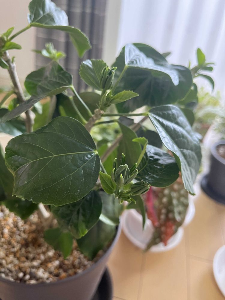 ハイビスカス🪴🌺剪定した時期✂️失敗したかなぁと💧心配してましたが蕾が何個かついてます😊春に向けて元気な🪴に育ってくれたら良いです🙏
