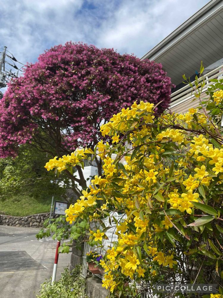 フェンスの奥から伸びた幹がぐんぐん伸びてお日様をたくさん浴びて咲いています♪