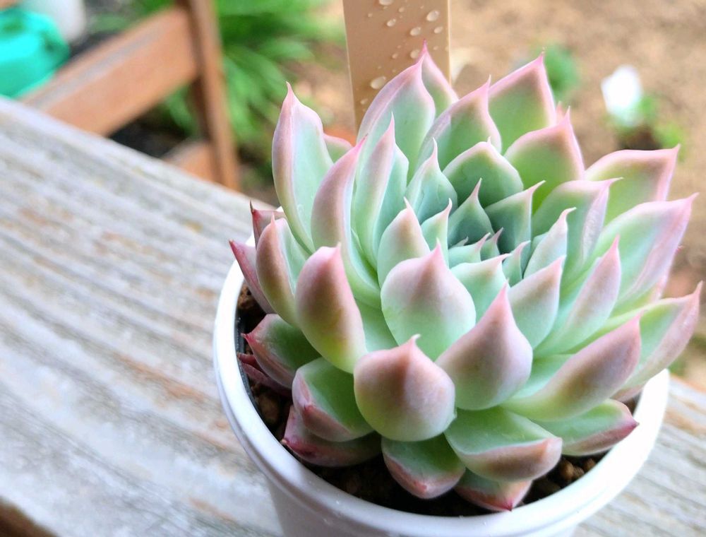 GS投稿最初の多肉に選んだ、なんとも言えない優しい美しさを見せてくれる交配苗。
