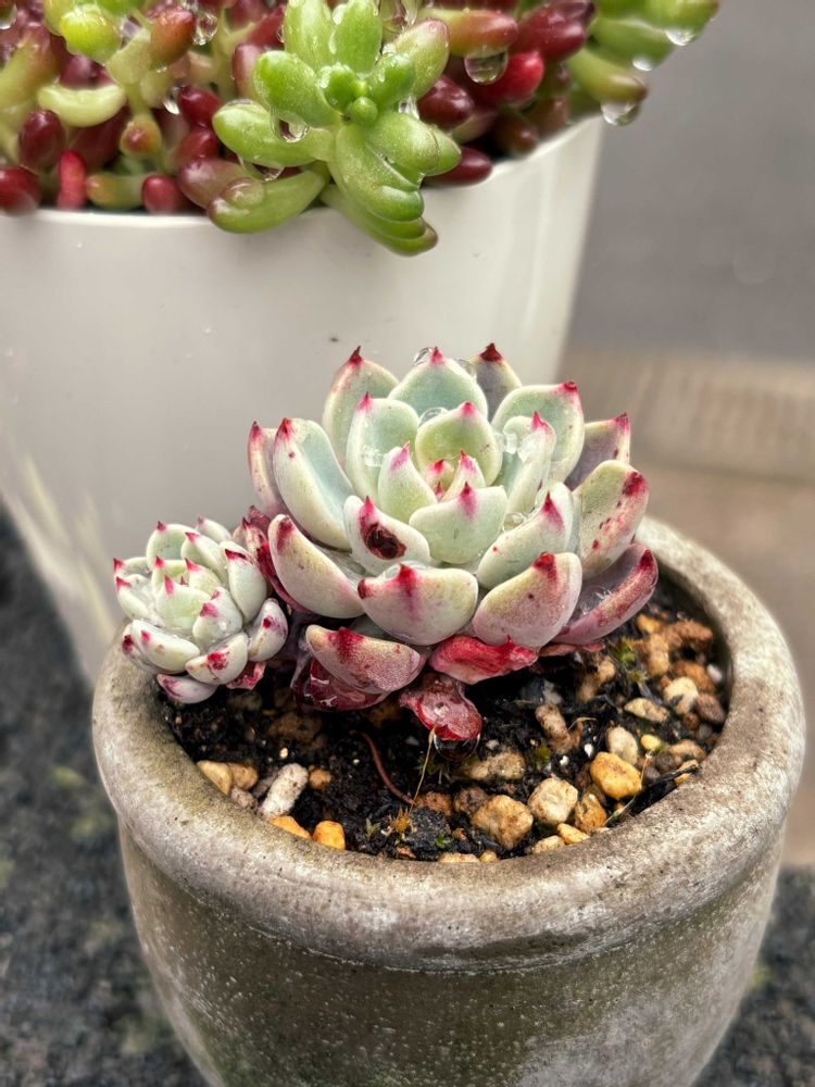 雨の中のエケベリアさん⸜(*ˊᵕˋ*)⸝