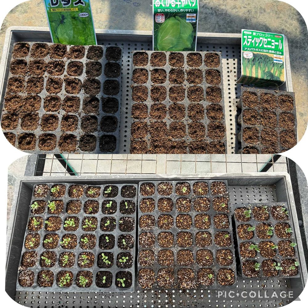 2月21日にハウスの中でレタス・キャベツ・スティックブロッコリーの種蒔きしましたが今日こんなに芽が出ています🌱😊