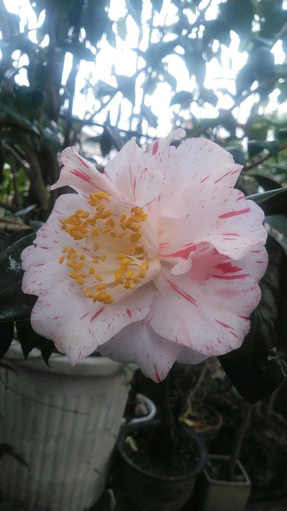 こんばんは。この品種見ての通り絞り咲きなので枝によっては赤い花が咲いたり真っ白な花が咲きますよ。