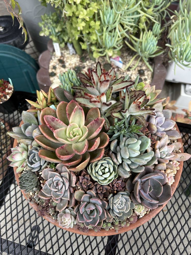 寄せ植え、大きめのはカクトロコの福袋で小さいのは杏林堂の多肉だよ〜