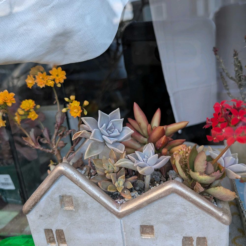 お家🏠みたいな鉢の寄せ植え、可愛いですね(ˊ⸝⸝o̴̶̷ ̫ o̴̶̷⸝⸝ˋ)✨️