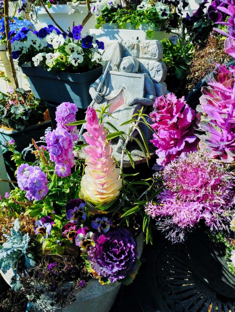 紫系の寄植えと葉牡丹達🌿
