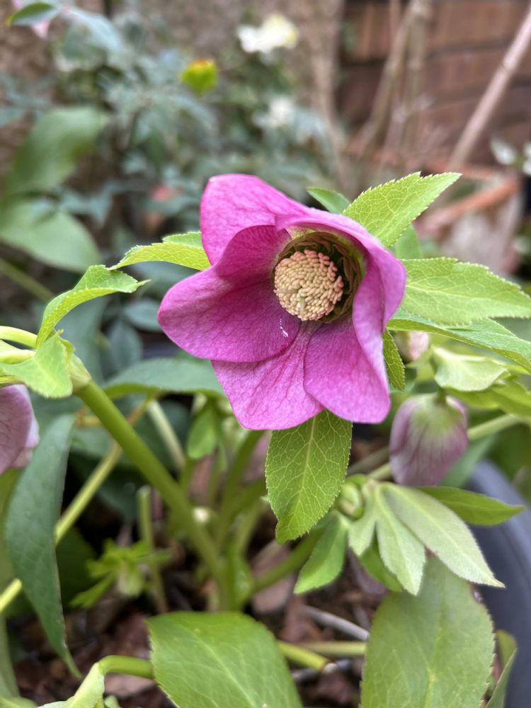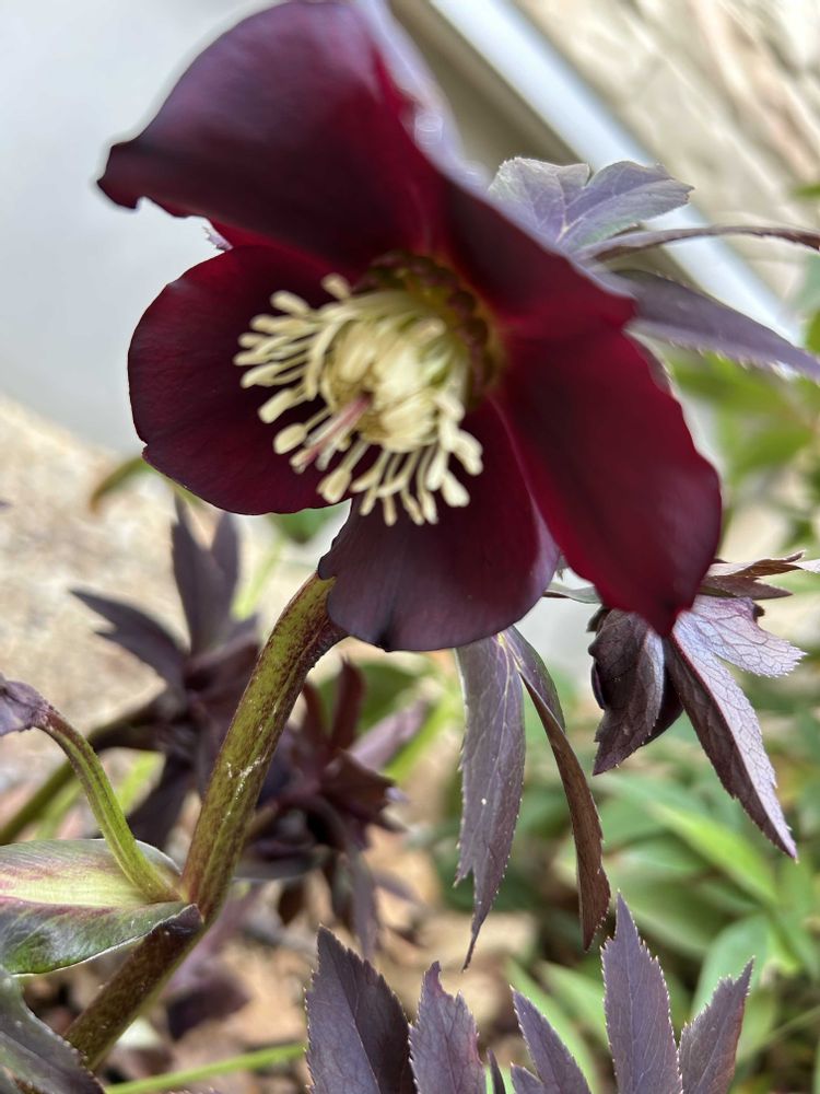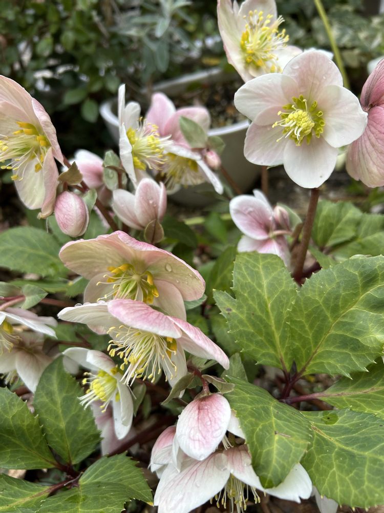 ①一昨年手に入れたクリスマスローズ・シューティングスターが、いつの間にやら満開です。