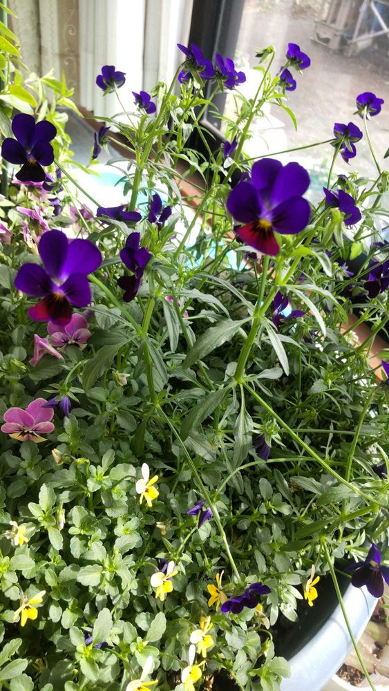一緒に植えたリトルコニー夜空のムコウ紫色の方は伸びまくって乱れ咲きです。😅