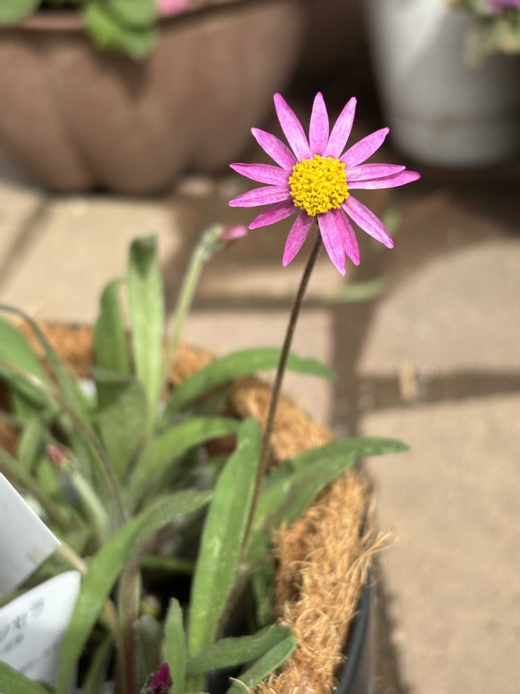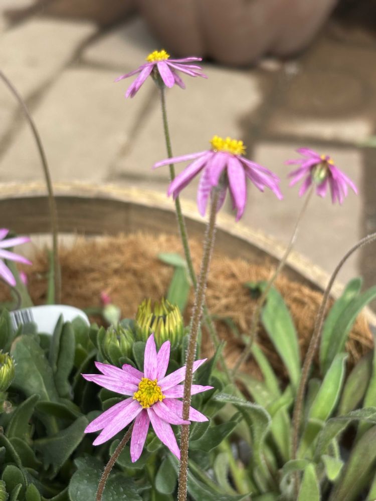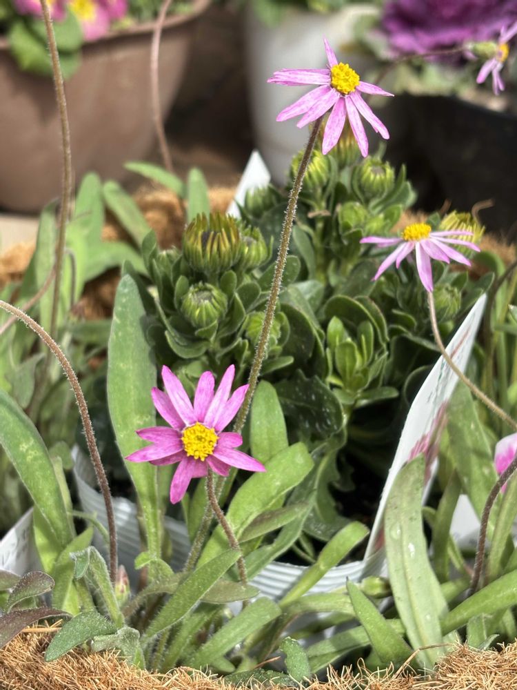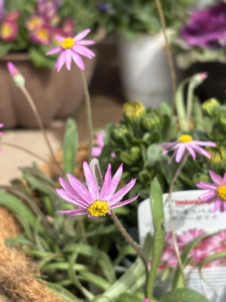 真ん中には、まだ蕾だけど、ピンクの花が咲く🌸オステオスペルマムのサニーガリナを置いてみた。