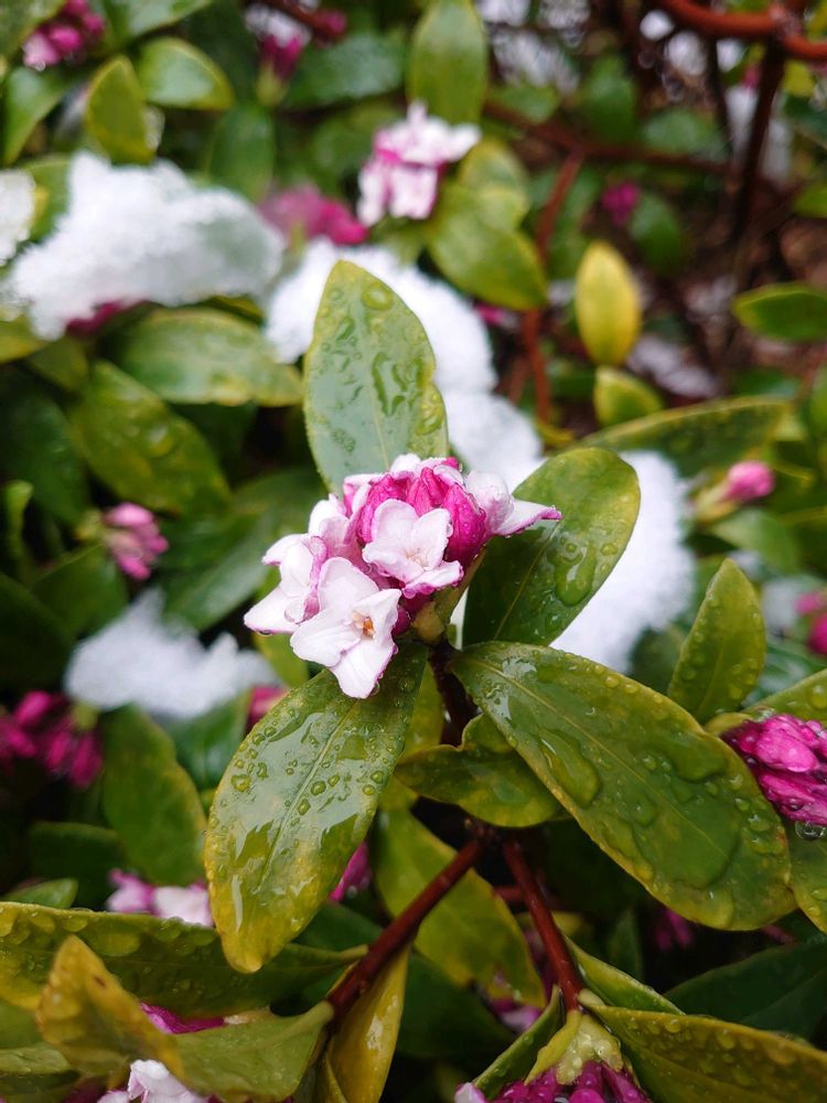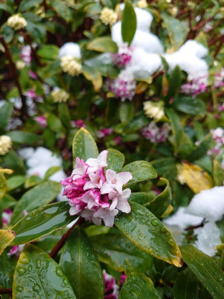 3️⃣4️⃣沈丁花❄月曜、火曜と埼玉に初雪が降りました❄水曜日の朝はまだ雪が残っていました😌 ここは出勤途中の練馬区、東京でも初雪でした❄