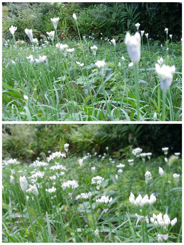③家🏡の裏庭に零れ種で増えたニラの群生✨