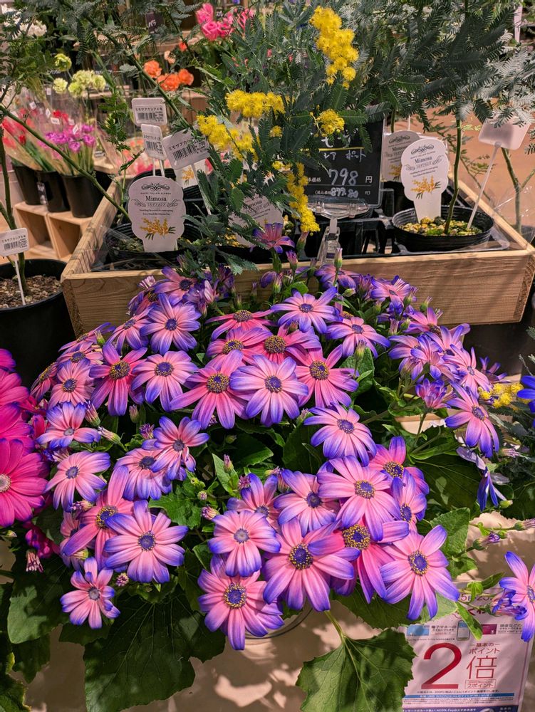 最後のサイネリアはイオンの花屋さんで見つけました。どんどん、色合いが進化😁交配が進んでいるようやね🫣。