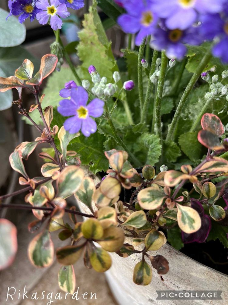 ①ハーデンベルギアを入れて、久しぶりに寄せ植え作りました。