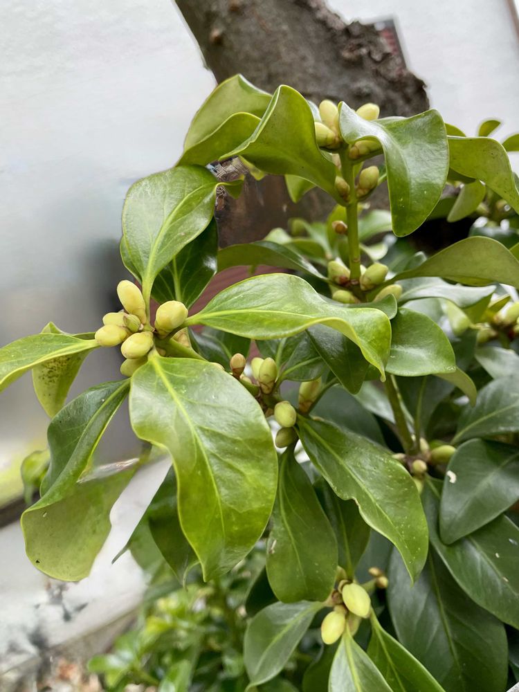 お隣さん、シキミを植えてるんですね。