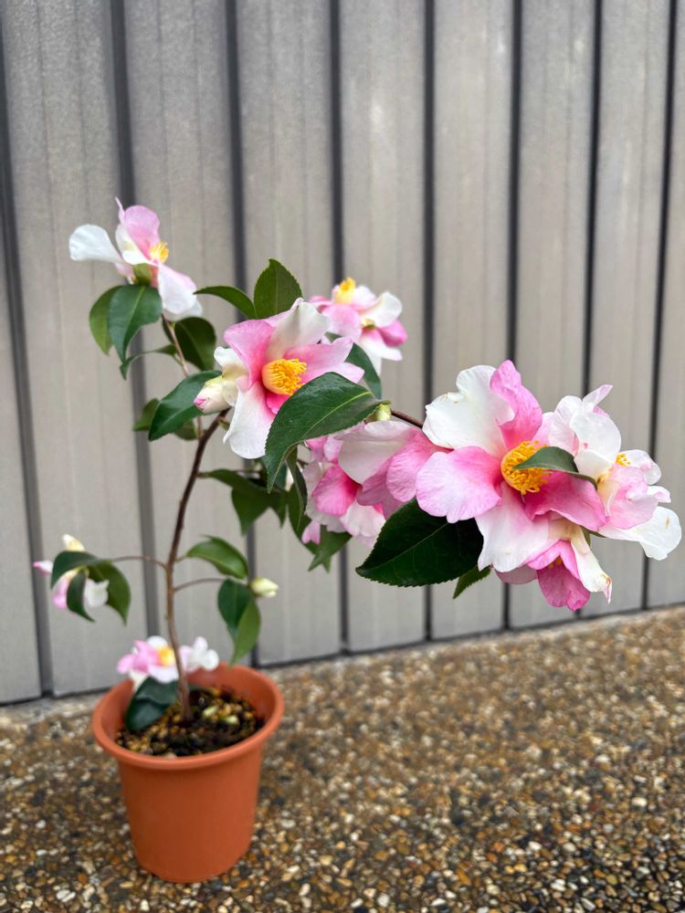 夢、かわいかったんだけど昨年人に譲りました。枝が横に広がるから場所とって置き場がなくなってきたのです。花付き良くて丈夫な椿でした😌