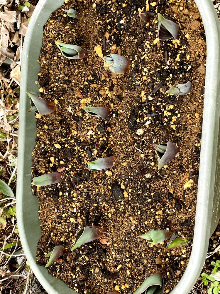 4枚目 チューリップ🌷の花芽咲くの楽しみです