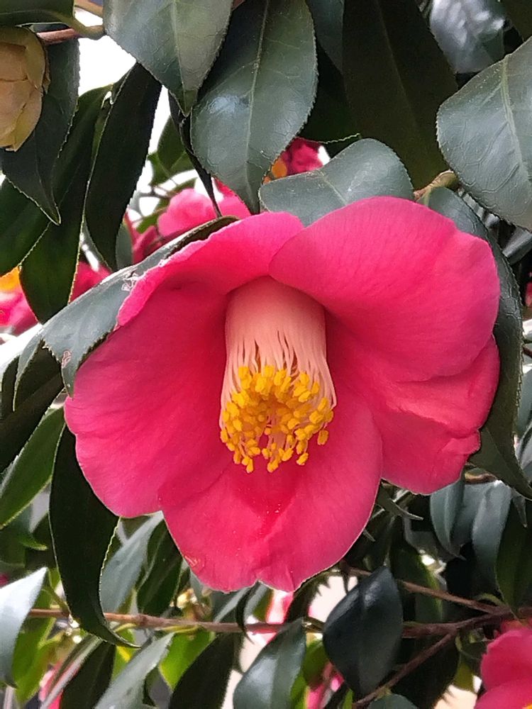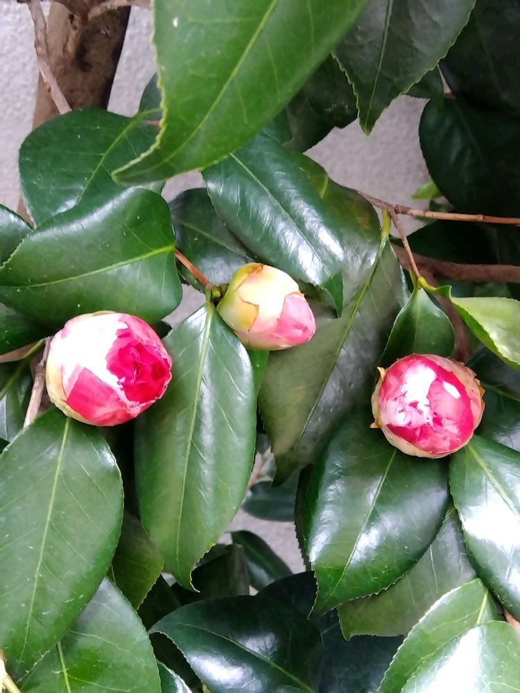 様々なツバキが花開きたくさんの蕾をつけて美しいなぁ