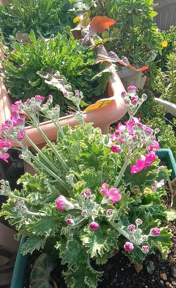 プランターの🌿はスターチス二株で、奥の方は花芽が立ち上がり、