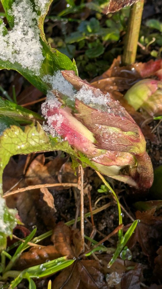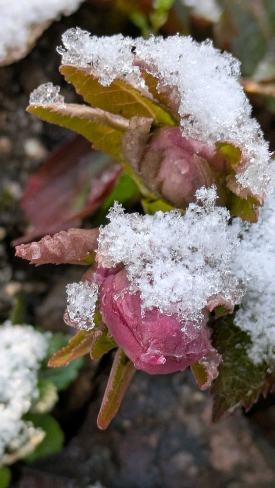 『もう咲いたか⁉️もう咲いたか⁉️と毎朝見に来られてプレッシャーかけられるけど、うっかり咲いてたら大変な事になってたわ☃🌀』