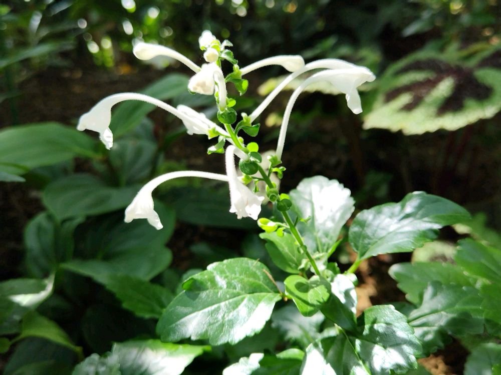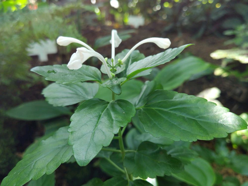今日の投稿は白い花で、写真1・2枚目ムニンタツナミソウ(無人立浪草)と 写真3・4アブチロンです✨
