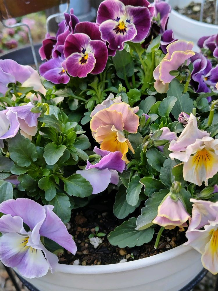 パンジービオラは前年度に買った苗から採れた種を蒔いて育てるのが楽しいです😅