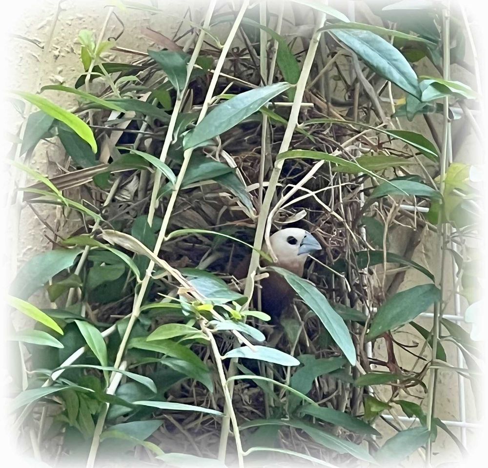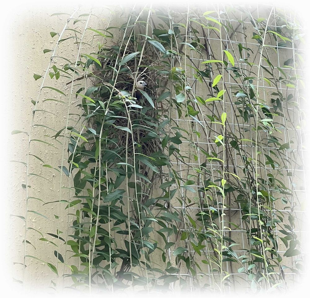 毎日「👀あるある☝️」とチェックしていて、今朝見たら住人というかママかな? 顔を出していた🐦〜顔が白いよ😊