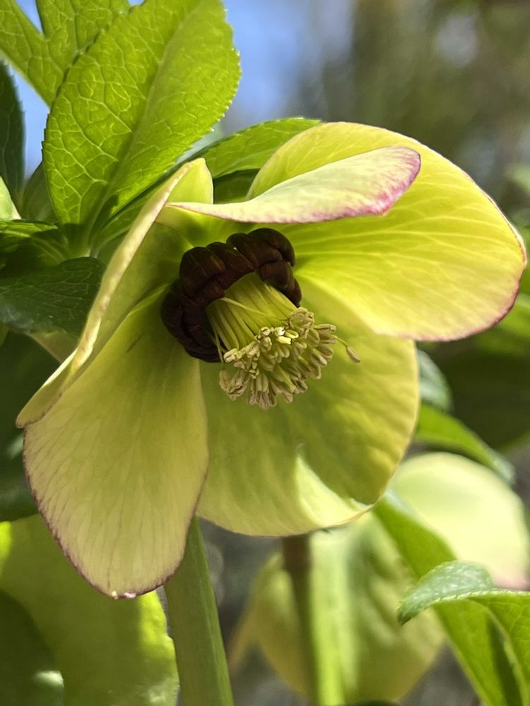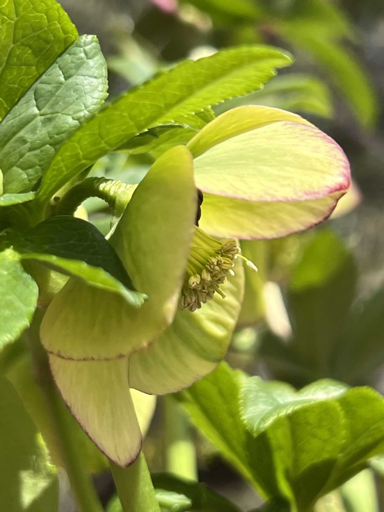 こんにちは☺️PEKO地方晴れ☀️西洋ニワトコやっと芽が出て来ましたよ✌️ライムグリーンのクリスマスローズ咲きました💚