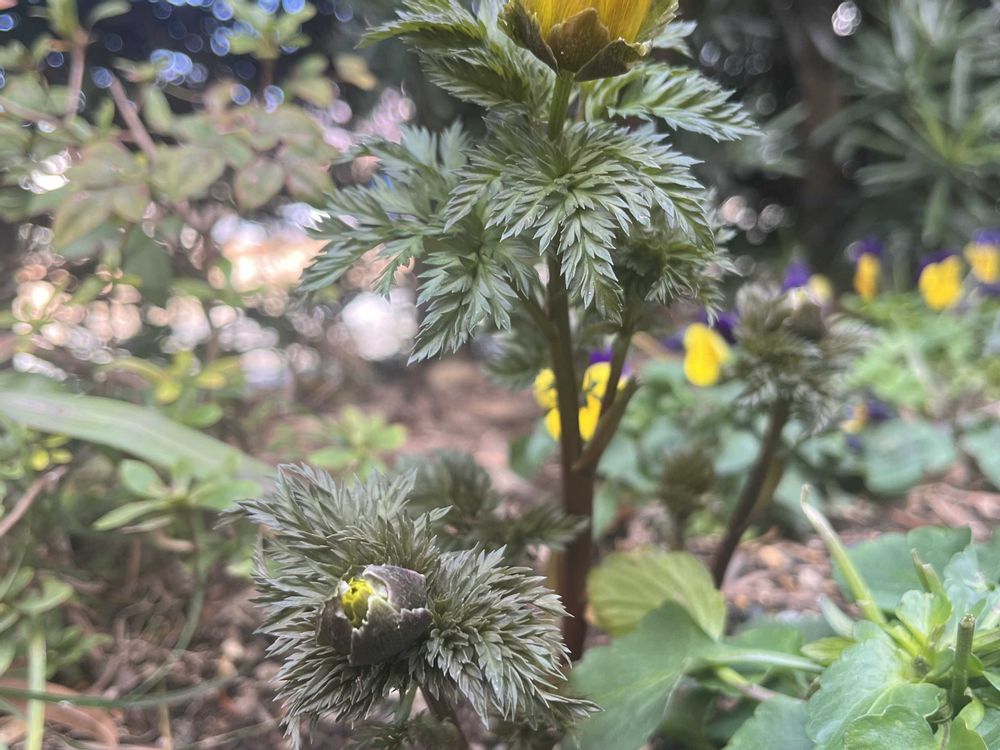 2枚目 開花した福寿草今朝は閉じてました,左右に蕾が✌️