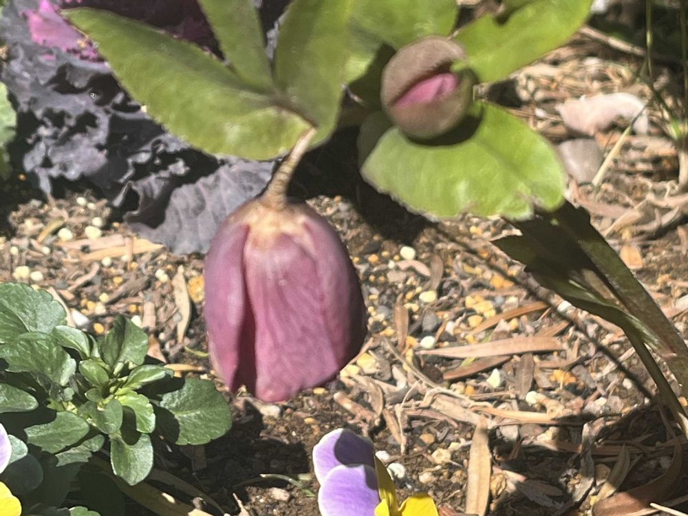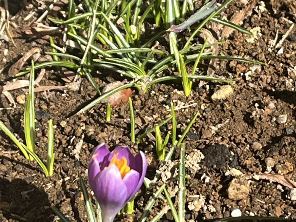 5枚目 クロッカスムラサキ🟣が白花にだいぶ遅れて開花しました🎶🎶🎶