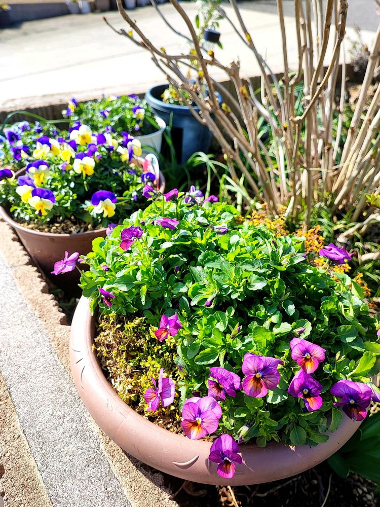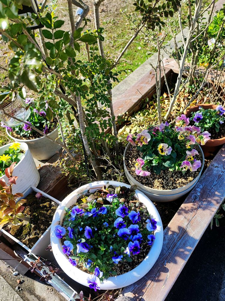 いい天気なので庭仕事が捗りました。ビオラがすでにぎゅうぎゅうパンパンに育ってるので鉢増ししたり、ヒメリュウキンカとか花がよく咲いてる子を前出ししたり、バラとかポピーとかの鉢増ししたり、ピラカンサの剪定をして玄関周りを春仕様にしたり、もったいない場所に植えてしまったクレマチスを掘り起こして鉢植えにしたり…疲れました~けどやりたかったことだいぶ進んだのでよかったですw