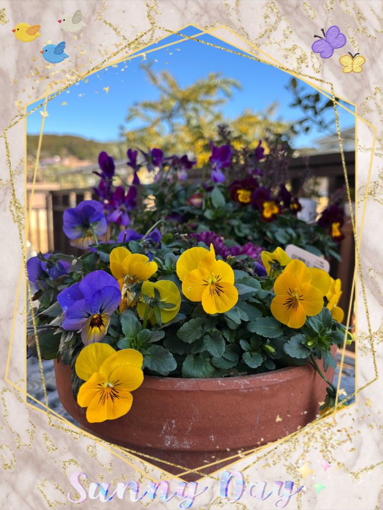 青空に映えるビオラさんたちですね💕