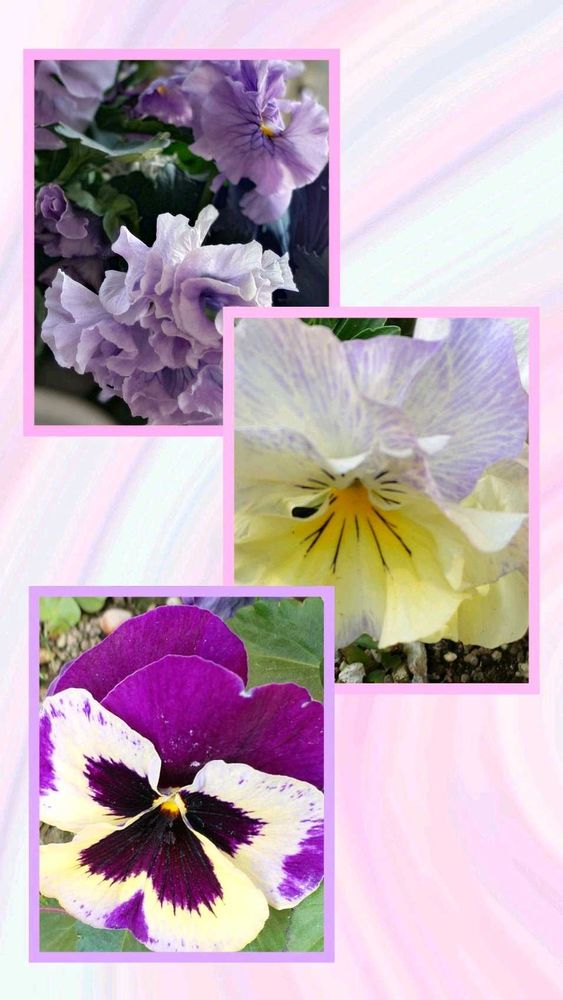 マンションの花壇の大きなパンジーとウチのフリフリビオラです😆💗💜