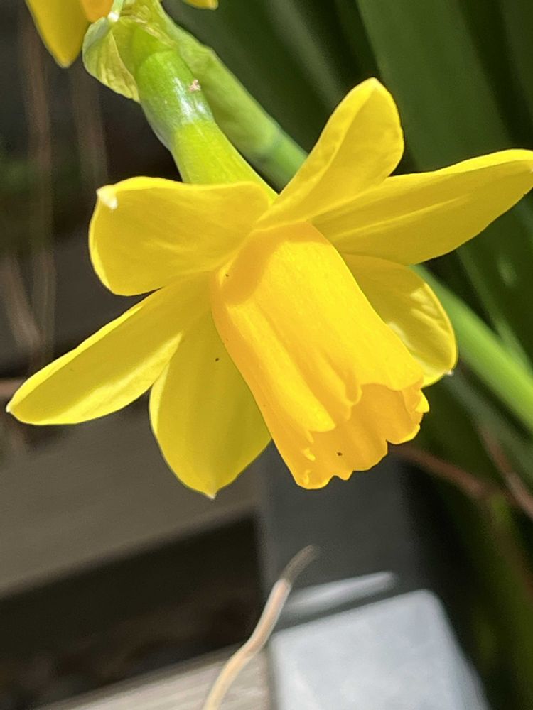 知らないうちに鉢の影に咲いていたミニ水仙ティタティタ💛💛💛