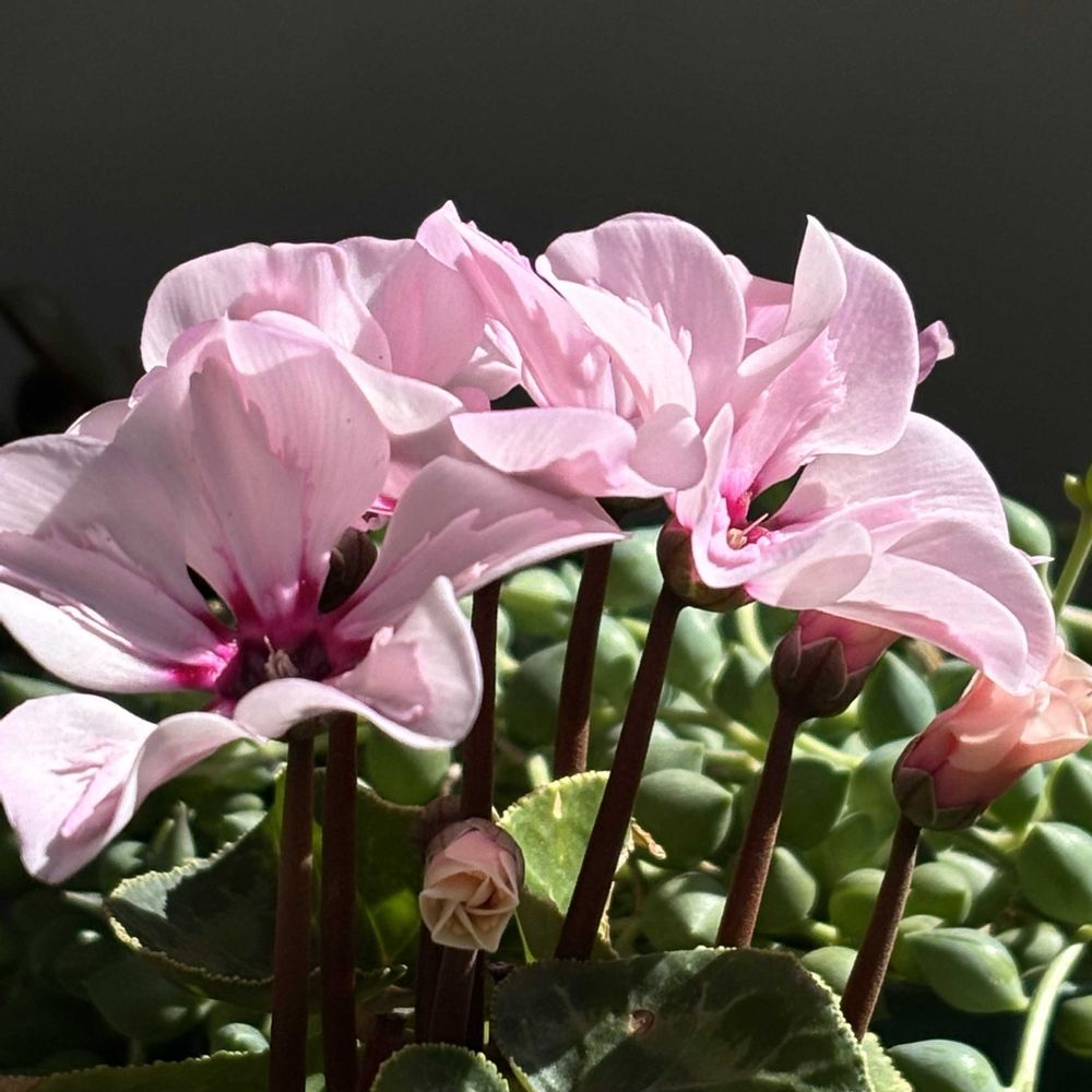 黒の背景にピンクの可愛いシクラメンが映えますね~🥰🩷✨
