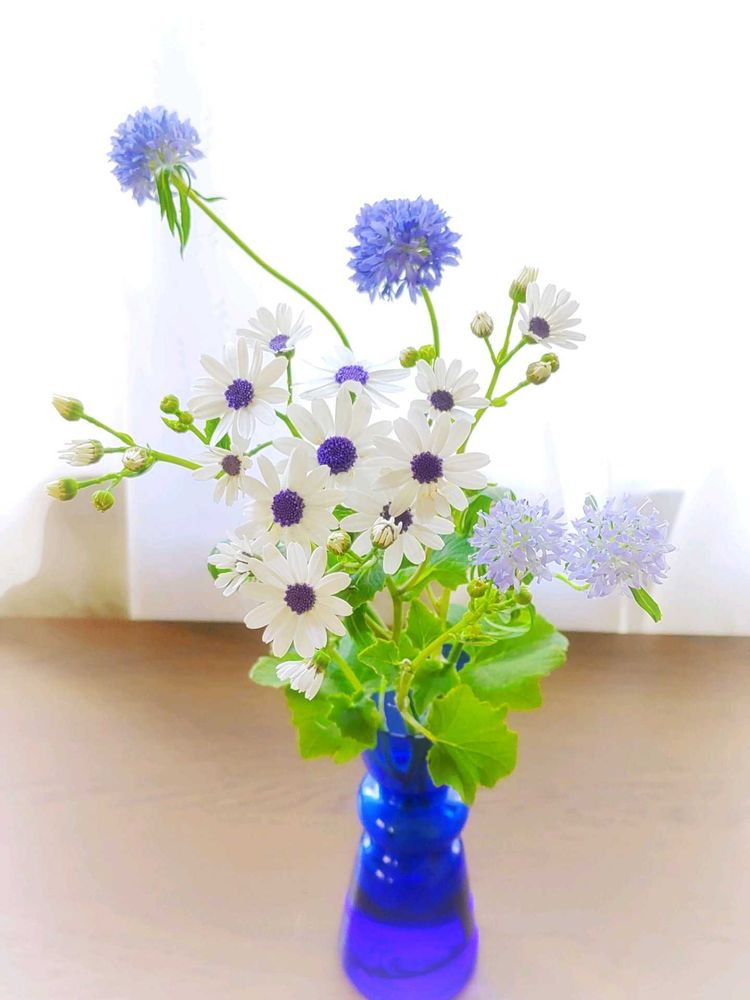 お店でこの花と出会った時、瑠璃色の花瓶に合うなぁと思い連れ帰りました。( ⁎ᵕᴗᵕ⁎ )