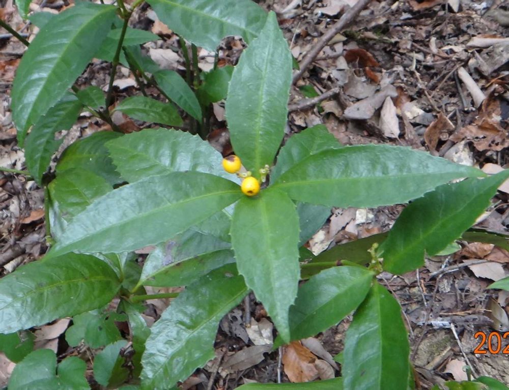 黄実千両(キミノセンリョウ)は、美しい黄色の実がなるセンリョウです。