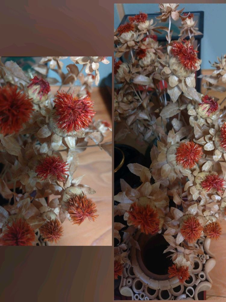 5枚め…枯れついでに、昨年咲いた紅花のドライフラワー💓