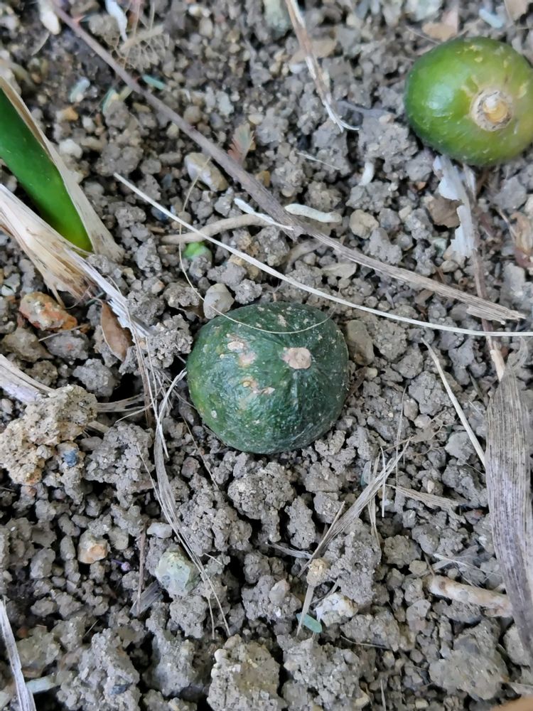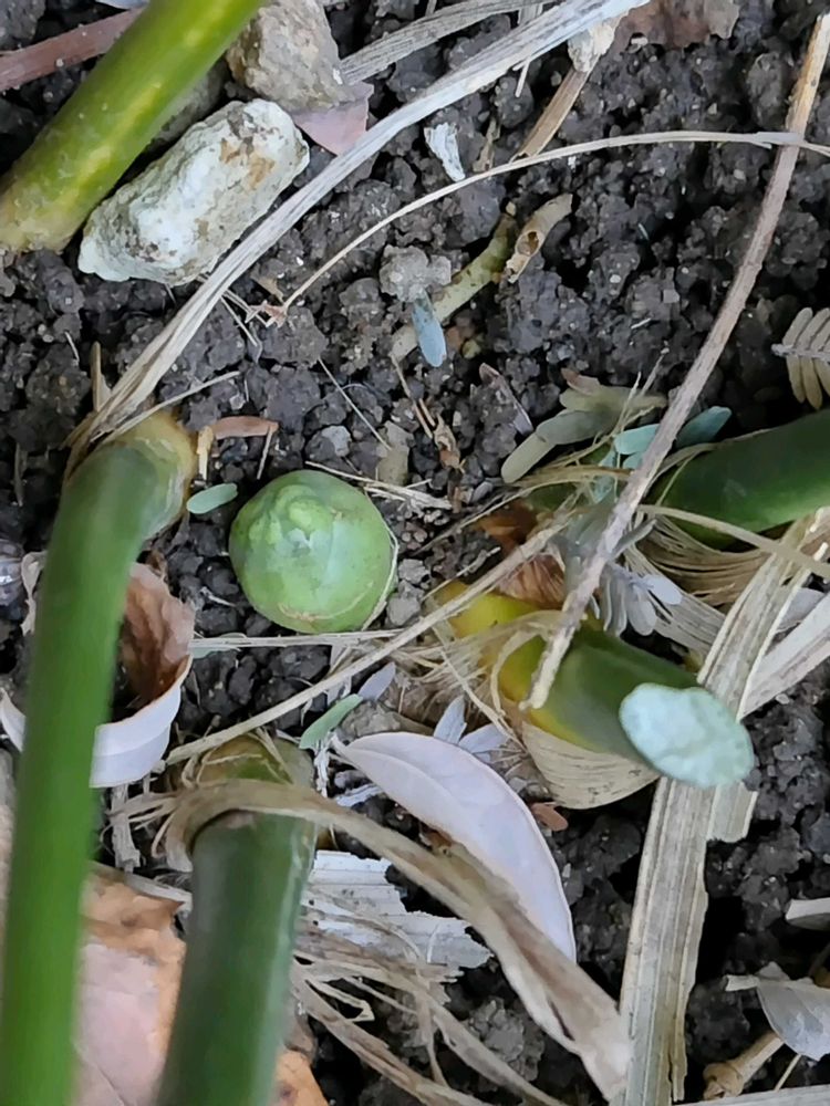 ちょうど茂り過ぎてたハランを間引いて(枯れたのや傷んでる葉)根元に緑色の丸っこい物体を見つけたところだったので、ググッてみるとコレは実と判明😃