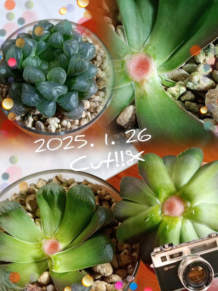 pic③④増えないオブツーサを胴切りしたら、子株ちゃんいっぱい🩷