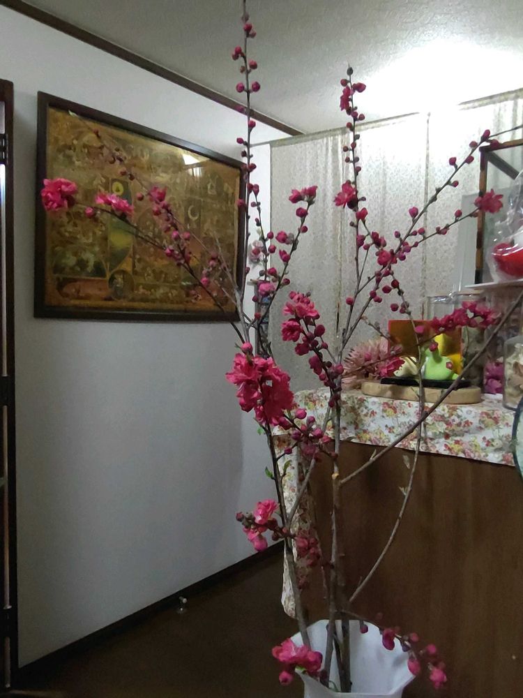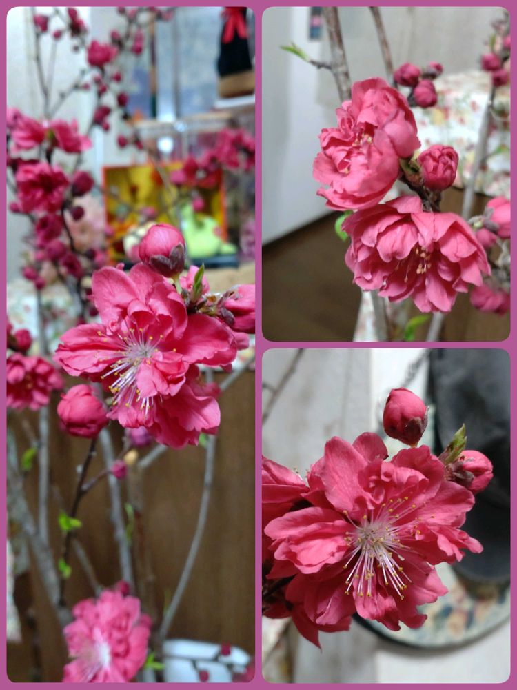 お友達からデッカイ桃の木を切ってピンク色ではなく、赤色に近い桃の花!