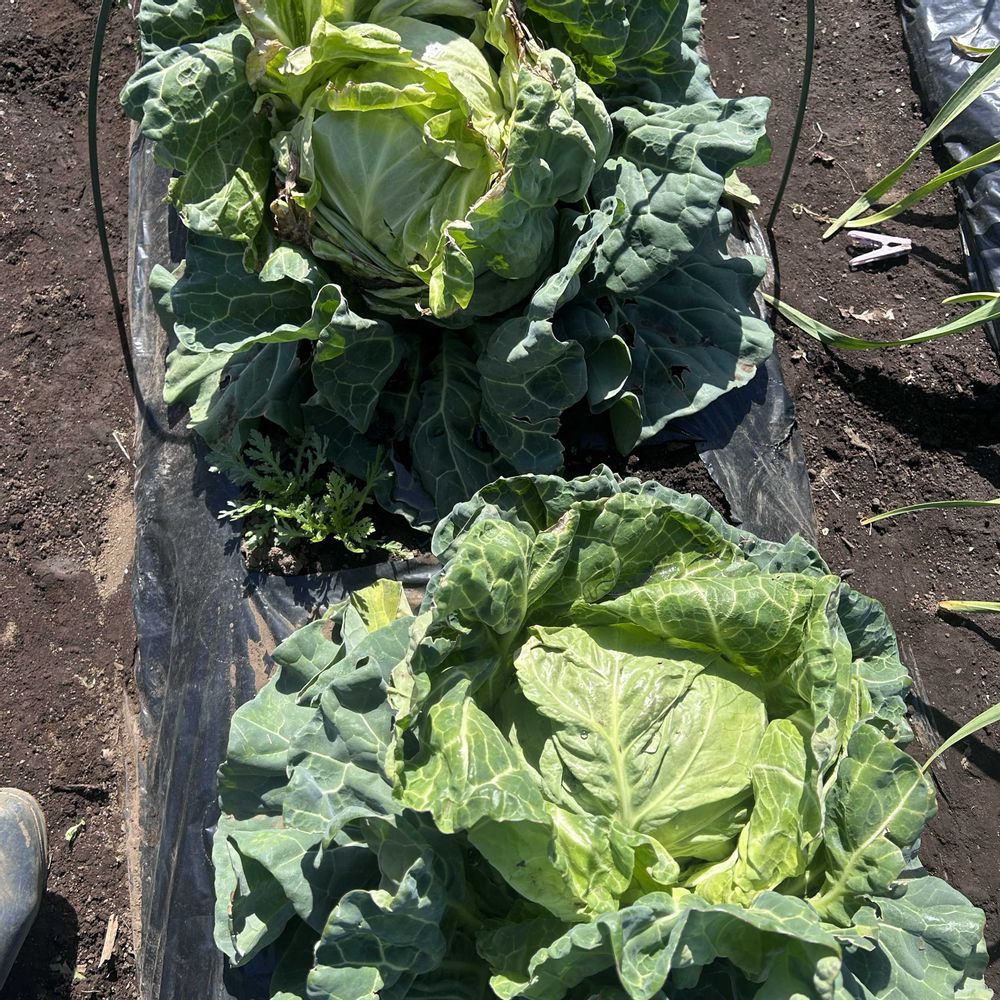 畑のキャベツは雪や季節外れの寒さで、一部黒ずんでいました。
