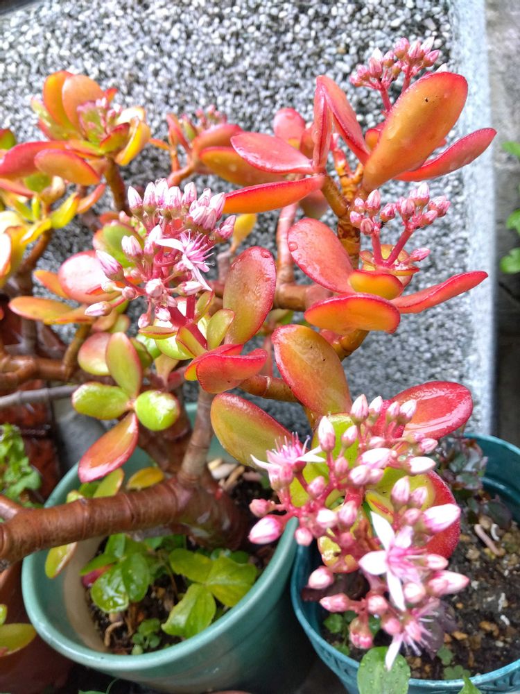 挿し木からの金のなる木🎶長年ちっともハナメに恵まれなくて待ちわびた花が咲きました〜🎶🤗
