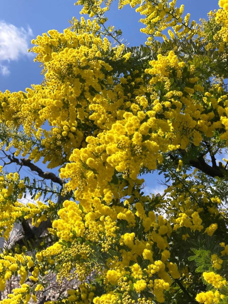 3月〜4月上旬、小さな黄色いふさふさの花を枝いっぱいに付ける木といえば、フサアカシアやギンヨウアカシア、いわゆる”ミモザ“ですね。