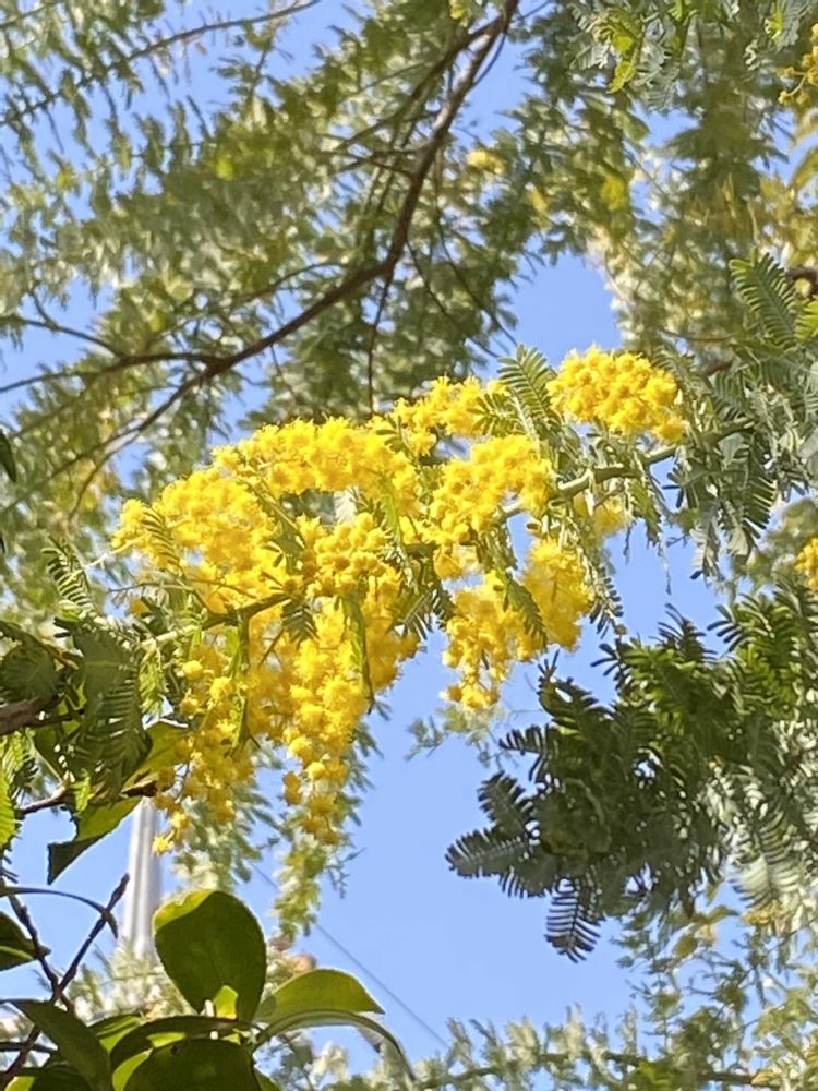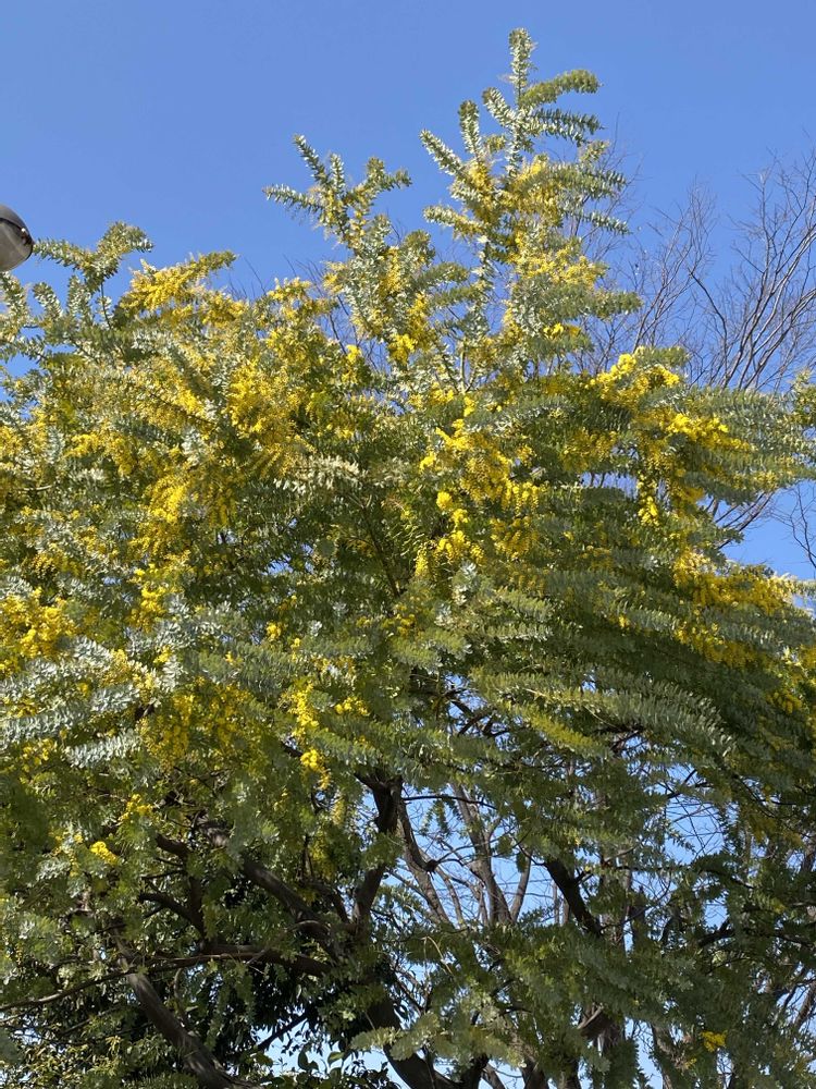 公園奥のミモザの木に今年も花が咲いていました💛💛💛