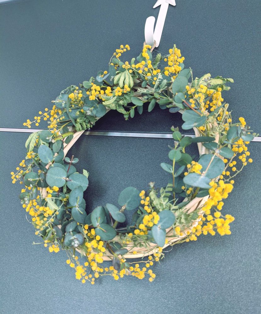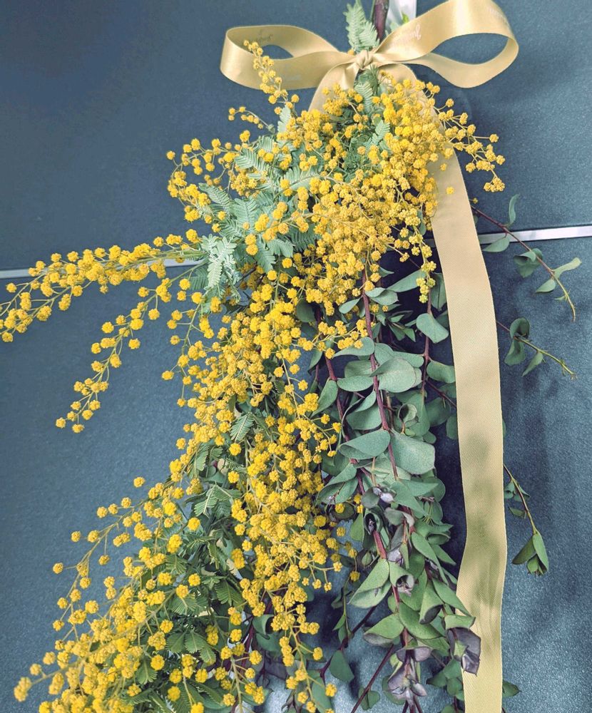 スワッグやリースは生花店の見事なミモザで作れば間違いなく素敵に出来ちゃいま〜す👌