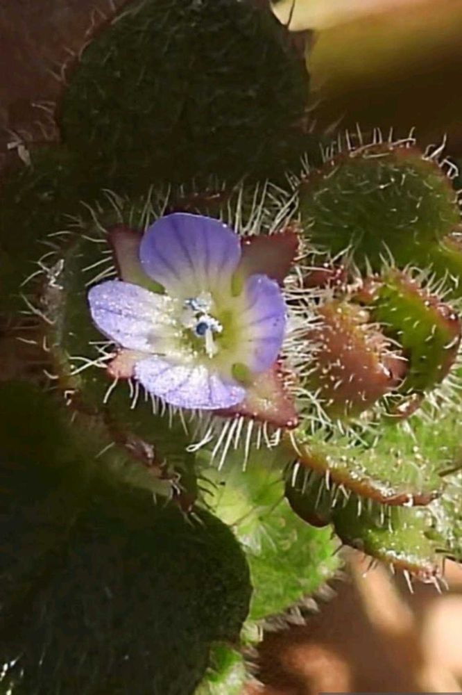 オオイヌノフグリに似た青紫色の小さなフラサバソウの花、モフモフの毛が凄いですね😄
