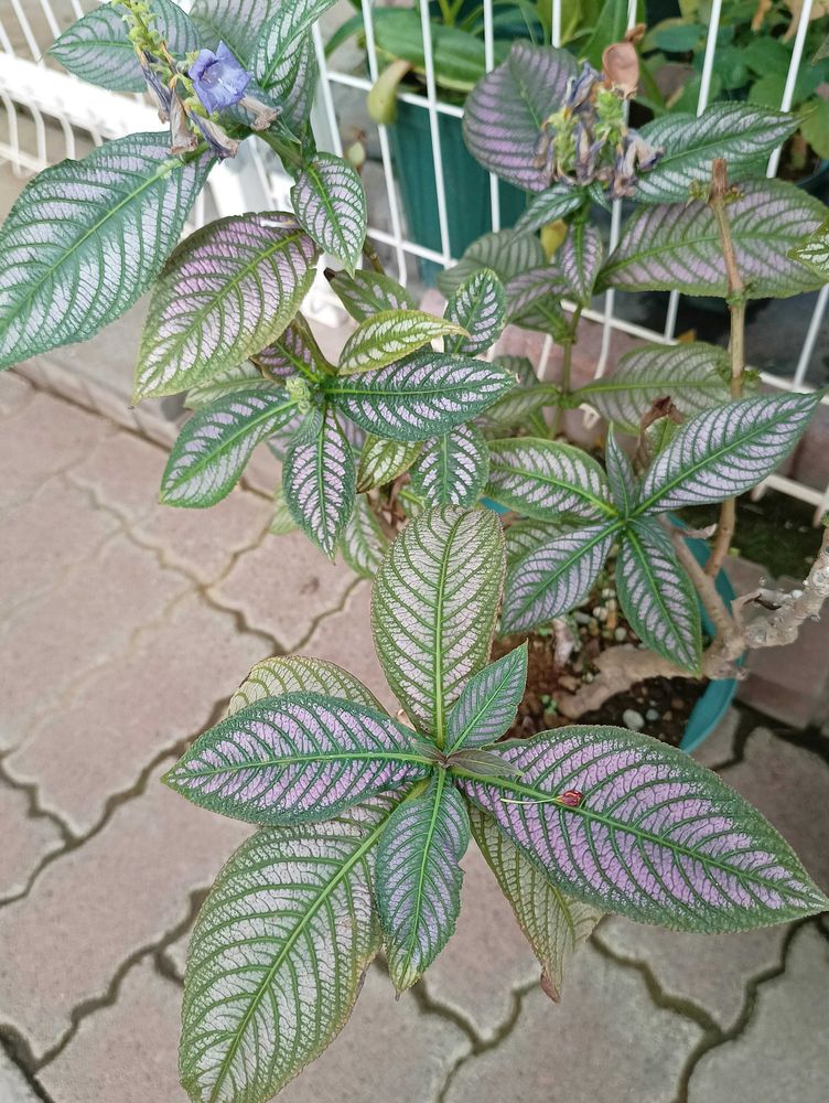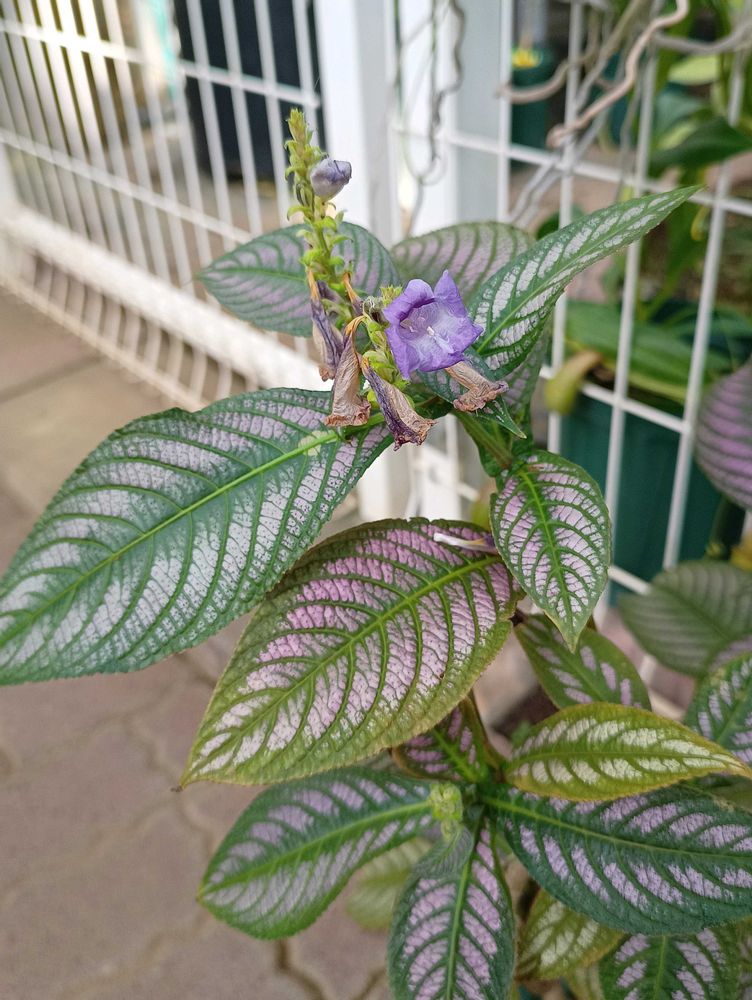 観葉植物として栽培され、鉢花や寄せ植えに利用されています。 葉は楕円形で、銀白緑色に暗紫紅色が混じり、金属光沢があります。 葉裏は暗紫紅色なので、和名をウラムラサキとつけられたそうです。