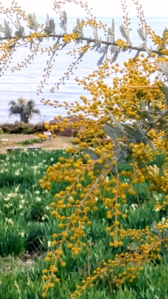 福山市内海町の水仙の里を訪れた先に植樹されていたミモザです