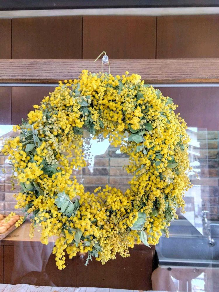 リースをアップしたお店にはミモザアレンジいっぱいありました💖💞💖