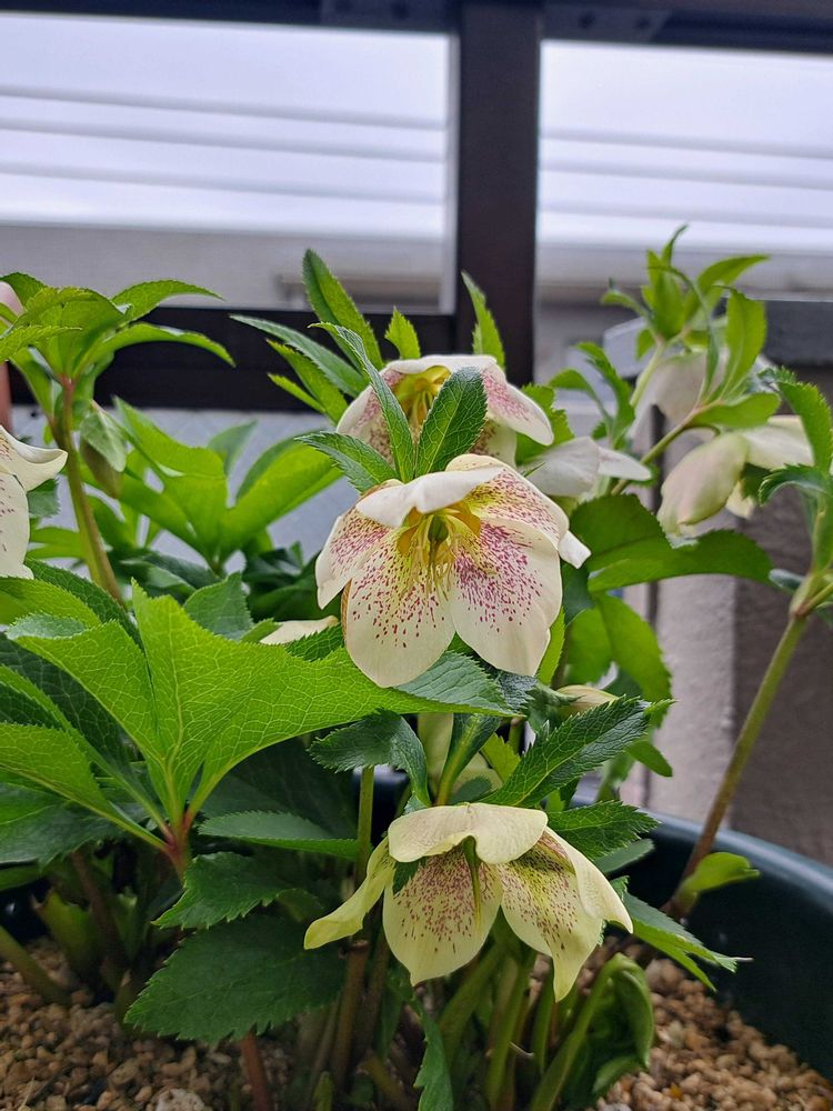 狭いベランダなので、バラ花が好きとクリスマスローズがメイン。春になって気温が上がると蘭たちもベランダに集結です。