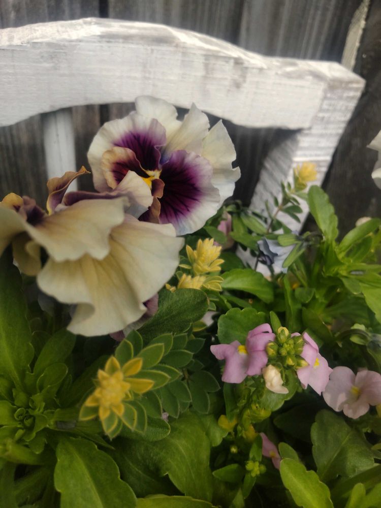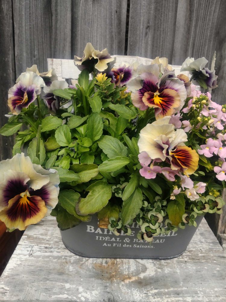 ブリキに寄せ植えしてたパンジーのマダムマシェリ